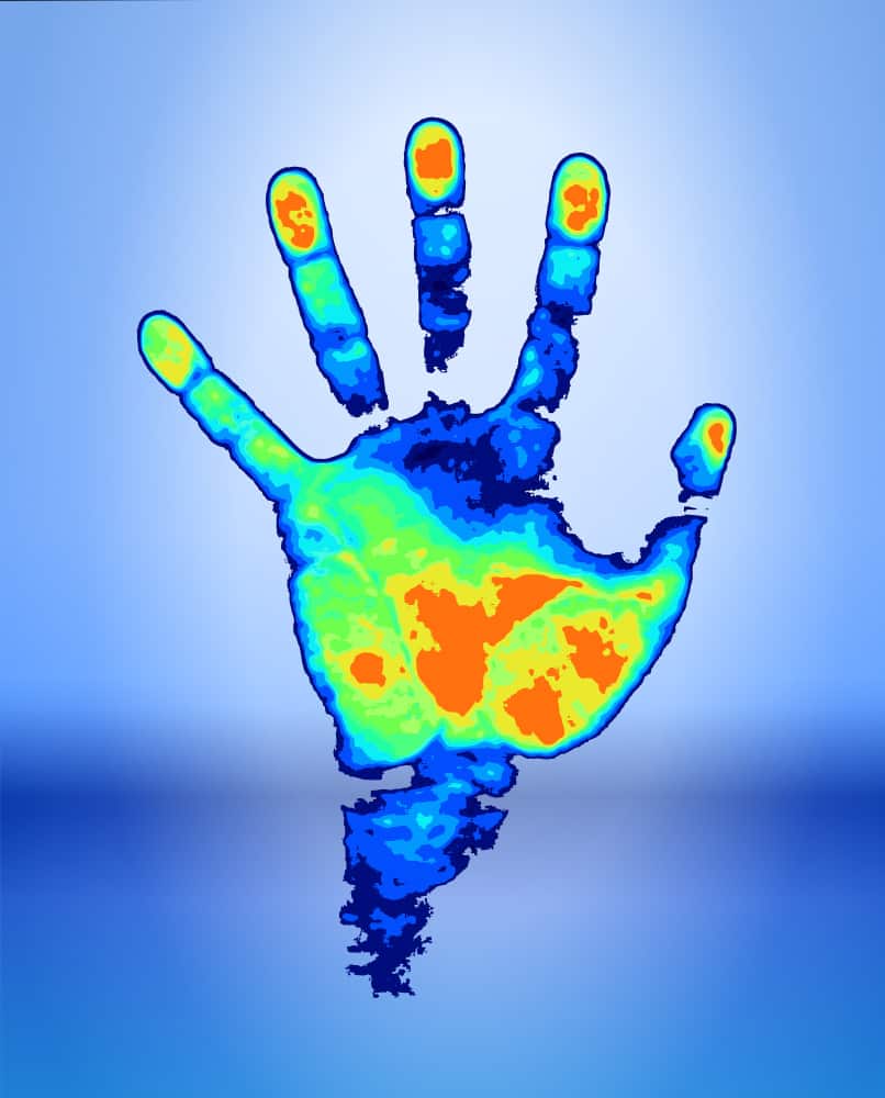 En større forskjell ble funnet i hendene. I gjennomsnitt er kvinners hender ikke mindre enn 1,56 °C kaldere enn sine mannlige kolleger. Hvis du som kvinne indikerer at du lider av kalde hender så klager du ikke, det er det virkelig!