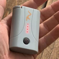- 7,4 – 2200 mAh frostvæskebatteriet er plassert i en batteripose med vanntett glidelås. Denne batterilommen er plassert på baksiden av hansken for enkel tilgang. Displayvinduet lar deg se og justere strømnivået uten å ta batteriet ut av hansken.